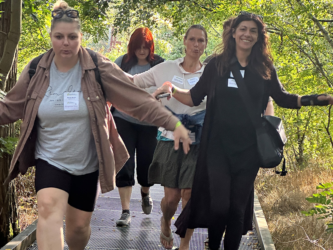 Rund 120 tandem-Mitarbeiter*innen fanden sich nachmittags ein, um bei schönstem frühherbstlichen Wetter nebenbei einen ganz besonderen Ort zu erkunden: Denn der Park befindet sich auf dem Gebiet des ehemaligen Rangierbahnhofs Tempelhof. Heute kann hier eine einzigartige Verbindung von alter Bahntechnik, wild gewachsener Natur sowie Kunst erlebt werden. Wer hier spazieren geht, findet zwischen Sträuchern und Bäumen alte Gleise, Wasserkräne, Lichtmasten, eine Dampflokomotive und eine der ältesten Drehscheiben Deutschlands.