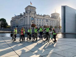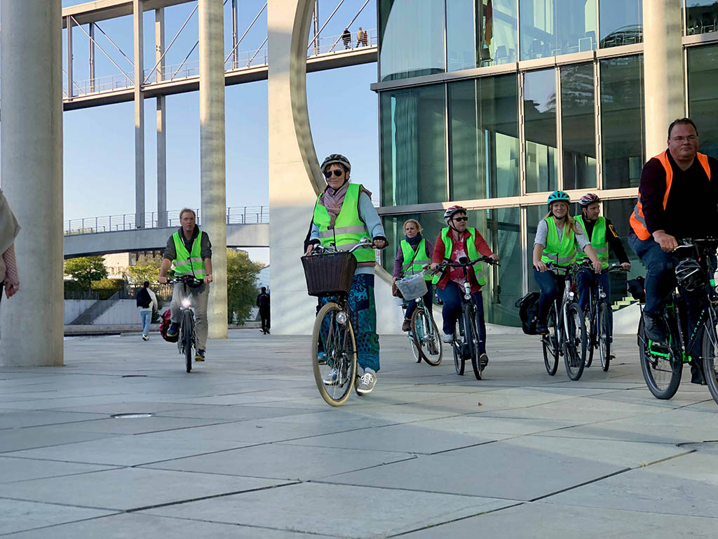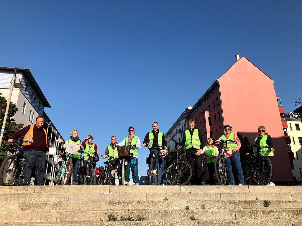 Start war jeweils die Kulturbrauerei, bei der auch Leihräder und Helme zur Verfügung gestellt wurden. Von da ging es Richtung Bornholmer Straße, dem Grenzübergang, der am 09.11.1989 zuerst geöffnet wurde, und dann weiter auf historischen Spuren entlang der ehemaligen Berliner Mauer. Rund dreieinhalb Stunden dauerten die erlebnisreichen Touren mit Picknick, bei denen die Teilnehmer*innen Berlin mit seiner langen Teilungsgeschichte näher kennen lernen konnten. „Die Radtouren haben allen große Freude bereitet. Nächstes Jahr planen wir wieder ein Event mit sportlichem Charakter“, sagt Annett Reusche.