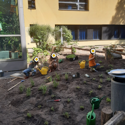 “Wir haben dann eine Garten-AG gegründet und für die Neupflanzungen mit der Baumschule Späth kooperiert. Diese kam bei uns vorbei und hat uns bei den Pflanzungen beraten und uns auch Erde und Stauden zum Einkaufspreis angeboten. Das Geld für die Pflanzungen haben wir beim Förderverein beantragt.“