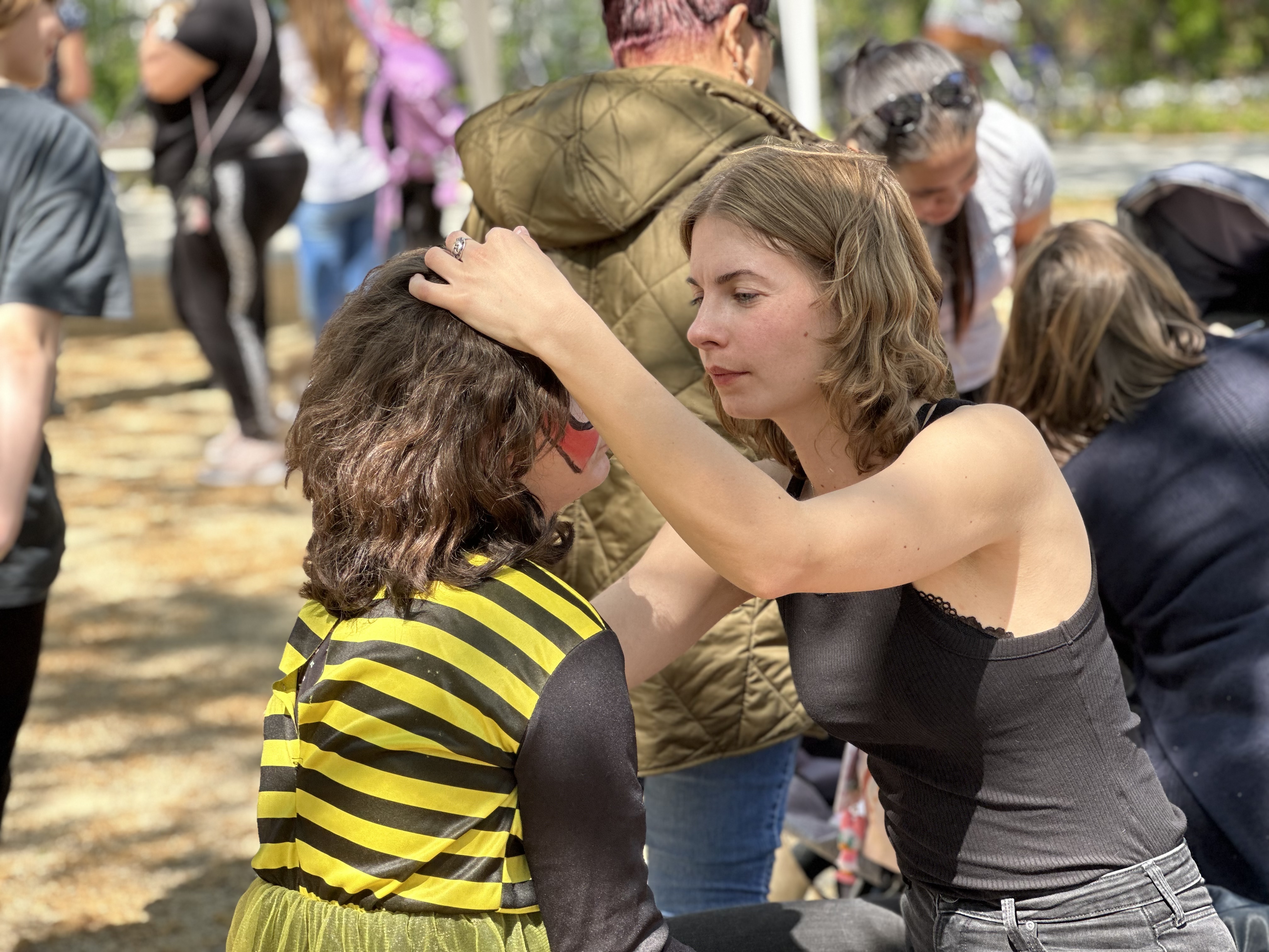 Für die Kinder gab es viele bunte Spiel- und Spaßstationen, betreut von den Kolleg*innen aus der EFÖB: Riesenseifenblasen, Kostüme zum Verkleiden, Kinnderschminken, eine Tombola, eine Fotobox und viele Bewegungsspiele sorgten für buntes Treiben auf dem großzügigen Schulhofgelände. Das kulinarische Angebot reichte vom gut besuchten Hot Dog-Stand bis zum reichhaltigen Kuchenbuffet und hielt für jeden Gast eine Leckerei bereit.